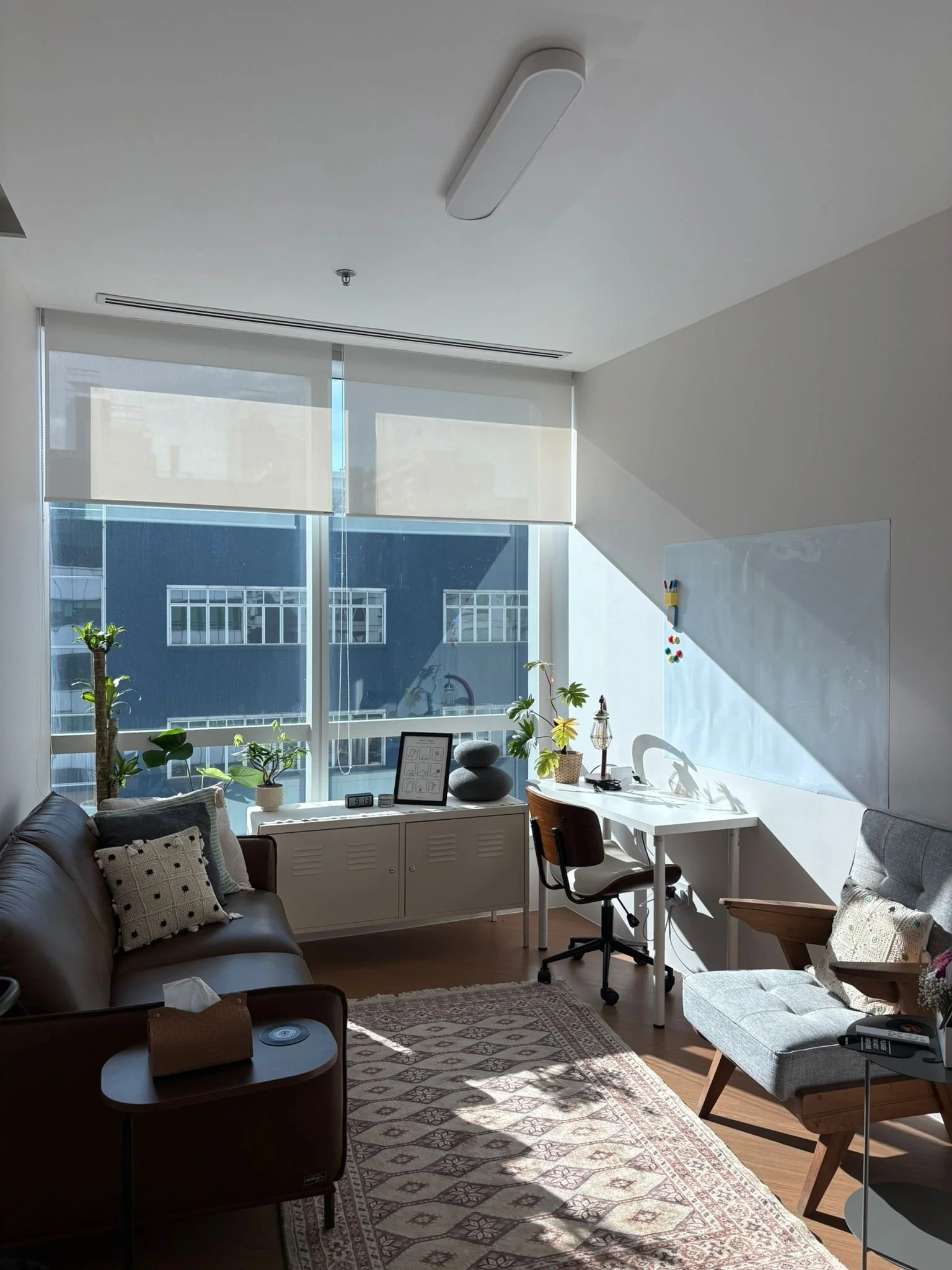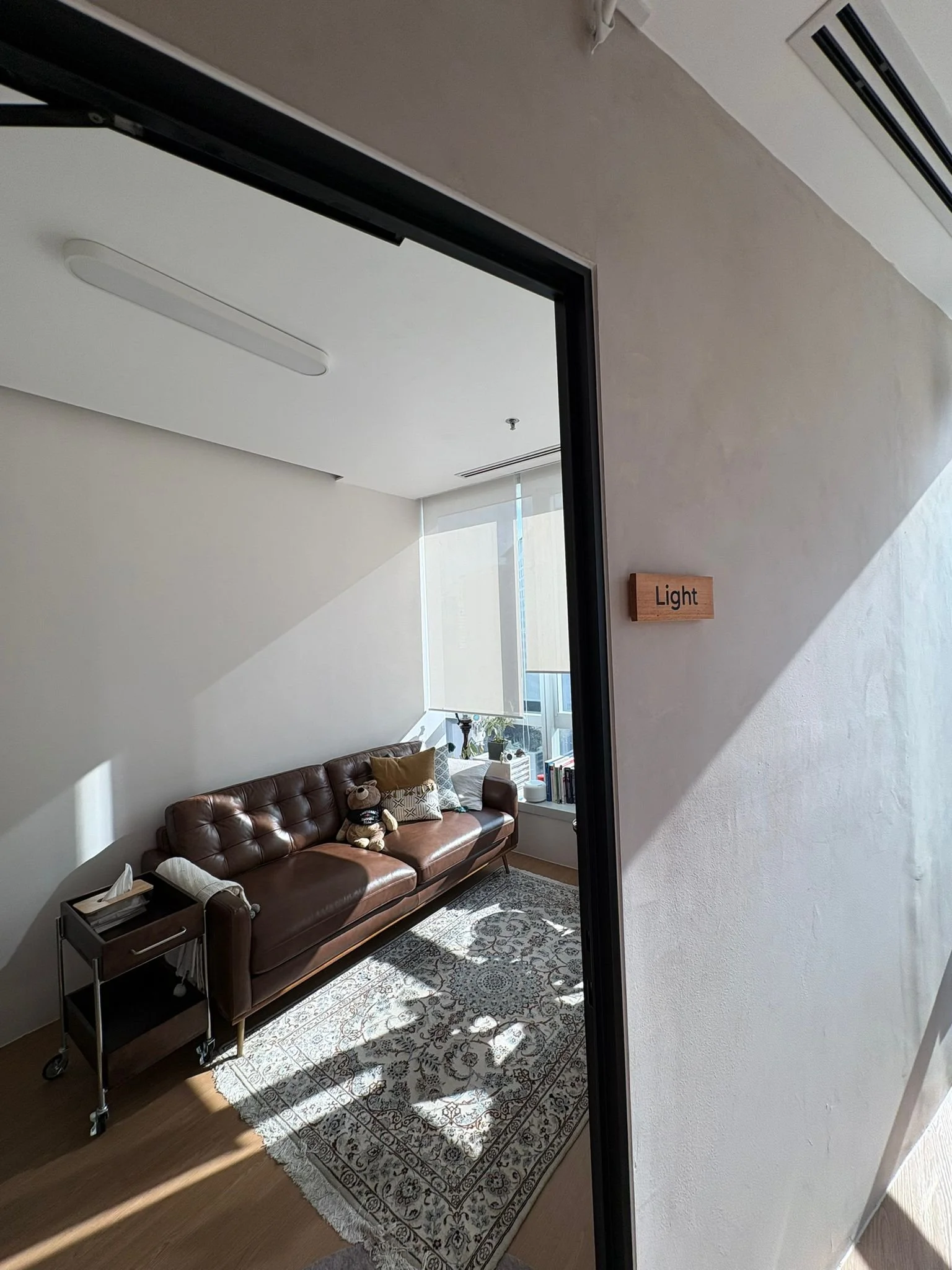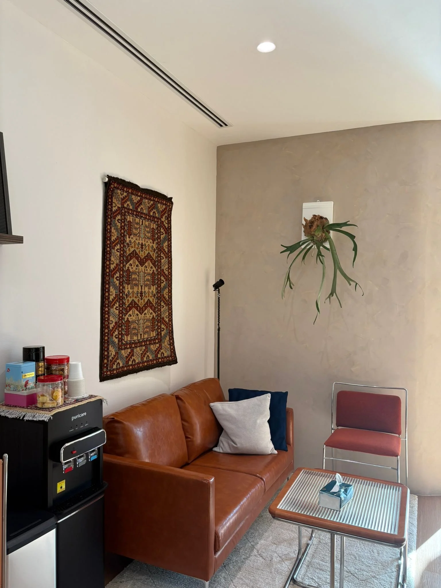 We've thought carefully about every corner of this space - because we believe the room itself is part of the healing. Soft light, a door that closes on the noise outside, a seat that holds you while you find your footing. It's small on purpose. Intimate, not clinical.